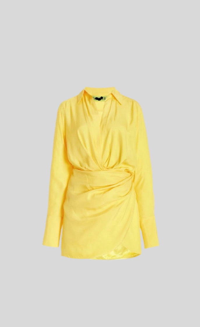Brighten up your wardrobe with our stunning yellow draped shirt dress crafted from a breathable linen blend fabric. Featuring a flattering wrap-front design, elegant collar, and soft waist draping, this dress is perfect for effortless day-to-evening styling. Lightweight yet structured, the linen blend keeps you cool while maintaining a polished look — ideal for summer brunches, garden parties, or resort vacations. Style it solo or layer it for a chic, elevated look.
