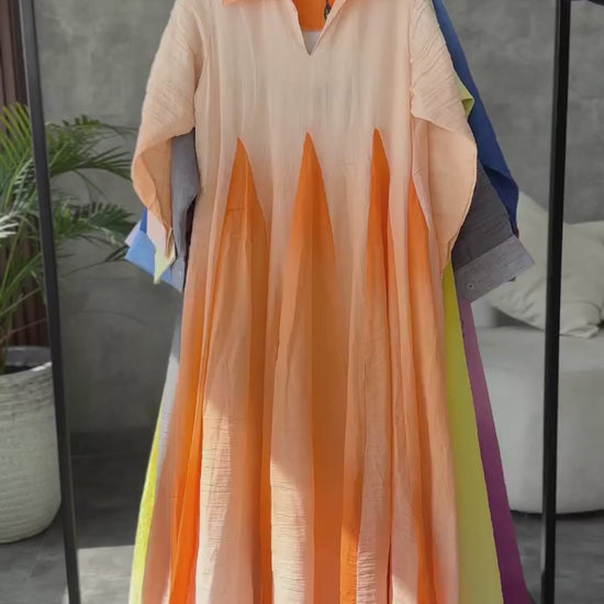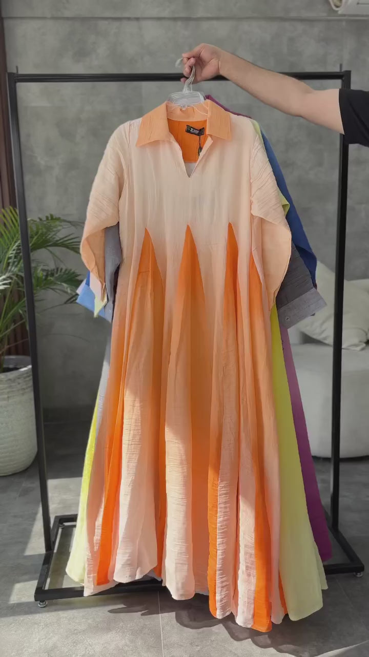 Add a splash of color to your wardrobe with our ombre-textured long tunics, designed for the woman who loves comfort with a contemporary twist. Made from a breathable, soft fabric with a naturally textured finish, these tunics feature a flattering flare, statement collars, and full sleeves with contrast cuffs — perfect for everyday chic.