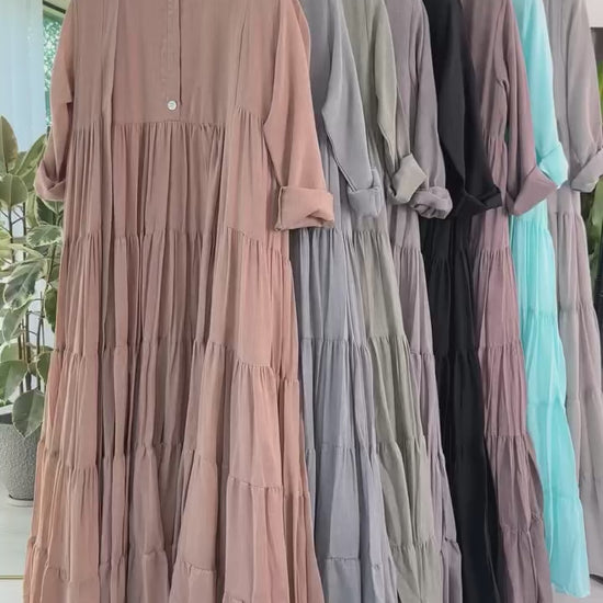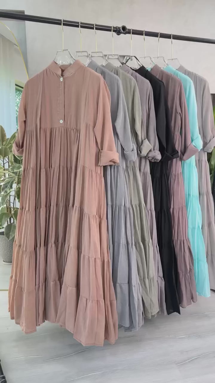 Upgrade your everyday wardrobe with our export-quality linen blend tiered maxi dress, designed for effortless elegance and all-day comfort. Crafted in a breathable, lightweight fabric, this dress features a mandarin collar, front button placket, and flowy tiered silhouette that flatters all body types.