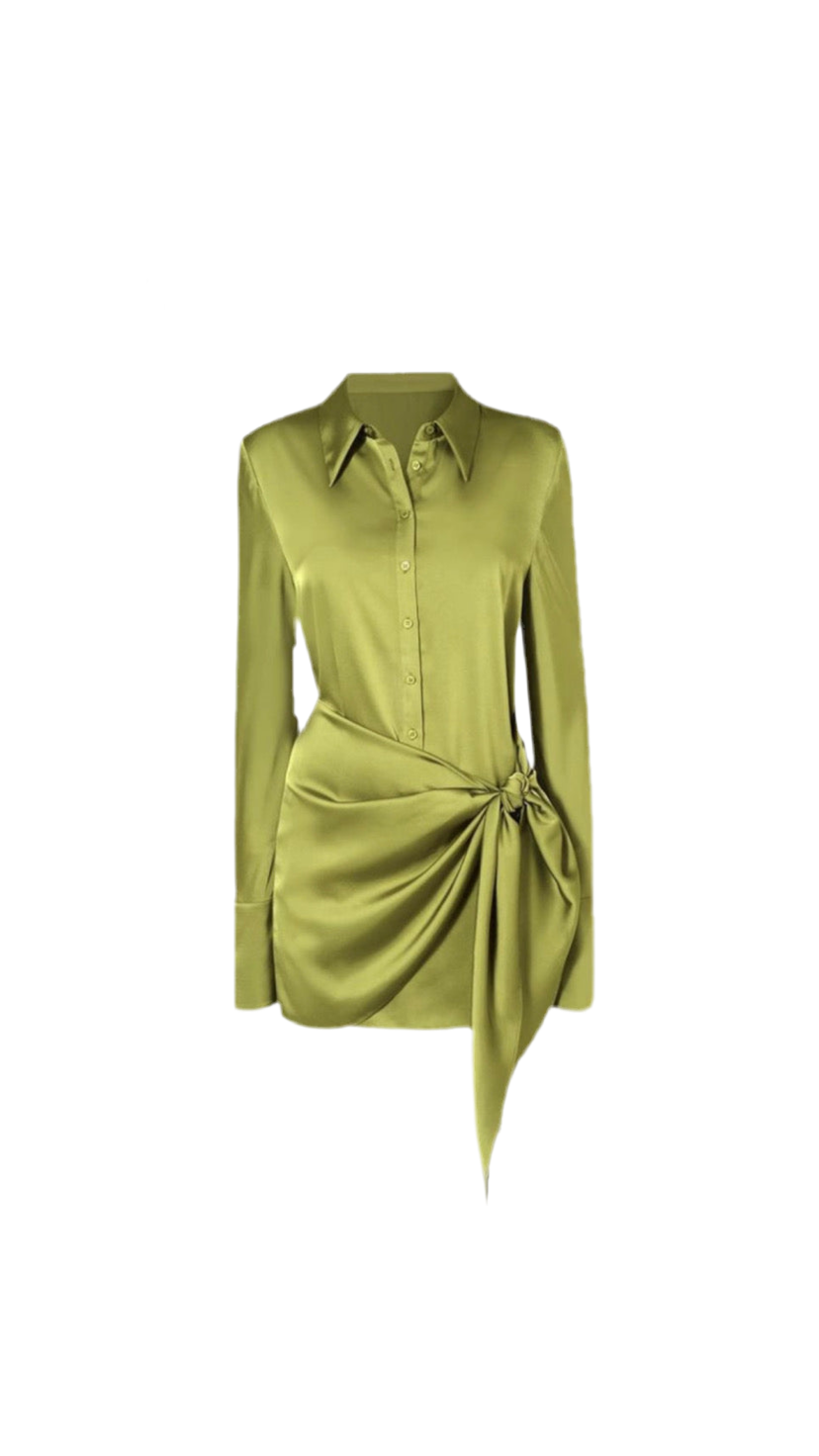 Discover our exclusive collection of satin draped shirt dresses — where sophistication meets high fashion. Available in striking olive green and royal blue, these luxe satin dresses feature a sharp collar, button-down front, and an elegant side drape knot for a figure-flattering silhouette. Perfect for cocktail parties, dinner dates, and statement evenings, these versatile pieces can be styled as mini dresses or long shirts. Elevate your wardrobe with the perfect fusion of chic and contemporary style.