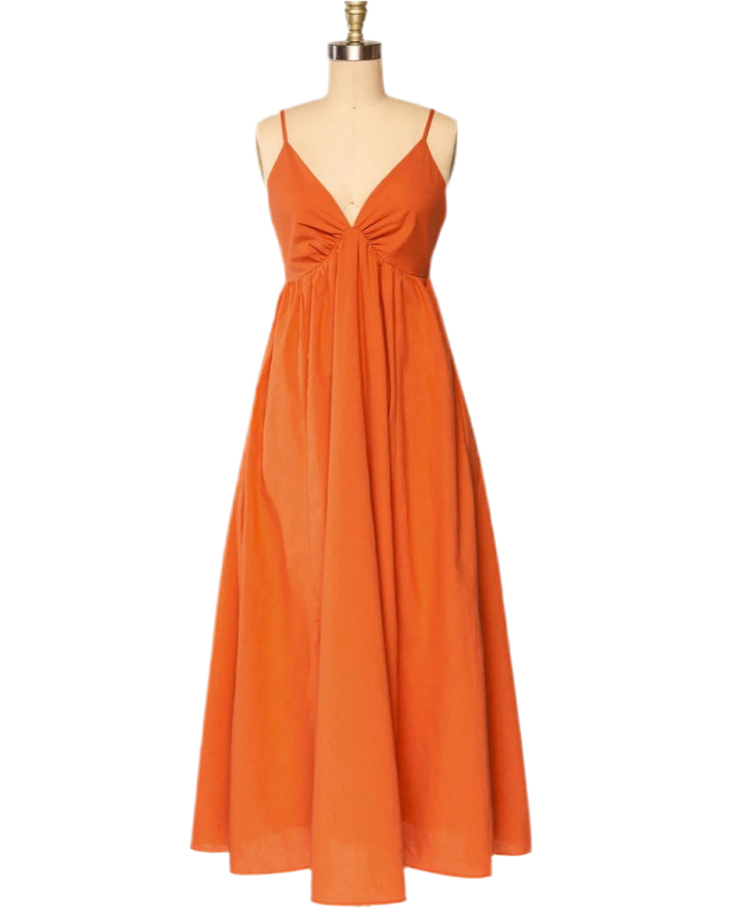 Orange Spaghetti Strap Cotton Maxi Dress for Women
