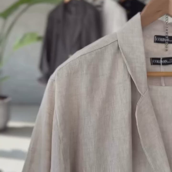 Elevate your look with the coat that defines effortless chic. Crafted from premium, breathable linen, this oversized, single-breasted duster features a relaxed drape and wide lapels for a modern, unstructured silhouette. The natural linen hue is a versatile foundation for any capsule wardrobe. Roll up the sleeves for a casual look or button up for polished layering. The perfect lightweight trench for every season with pant and inner .