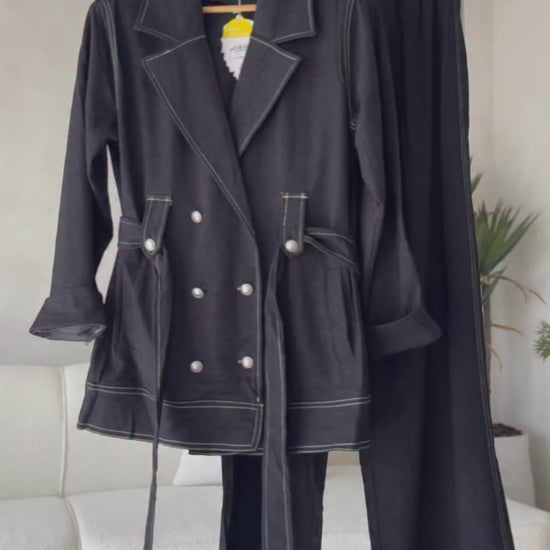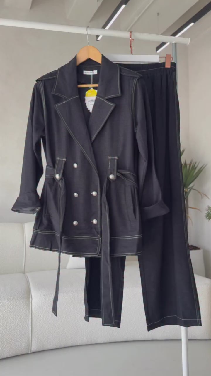 Discover our latest women’s long coat collection, designed for a perfect balance of elegance and everyday style. These belted double-breasted coats feature classic lapels, statement buttons, and contrast stitching for a modern twist. Available in neutral beige, jet black, and charcoal grey, these coats are ideal for work, travel, or casual outings.